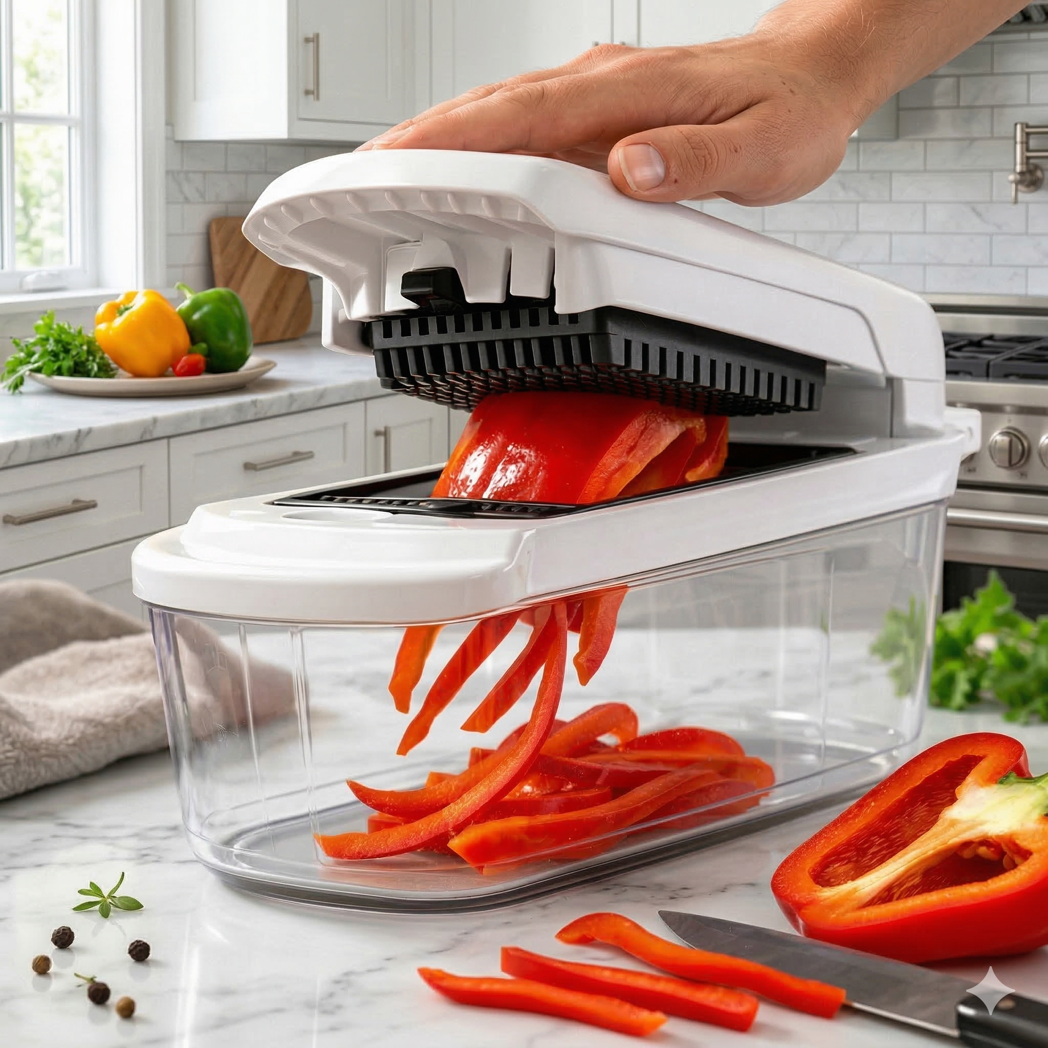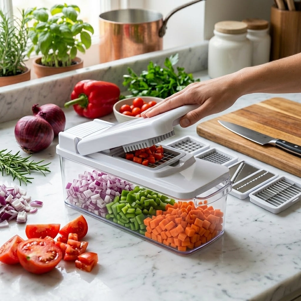 Say goodbye to messy counters and uneven cuts. With the All-In-One Vegetable Chopper, you can prep vegetables cleanly, quickly, and effortlessly — every time.